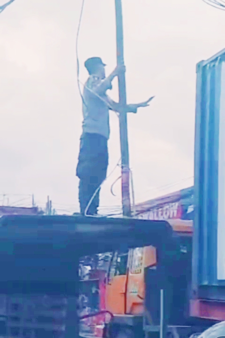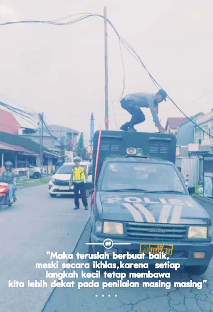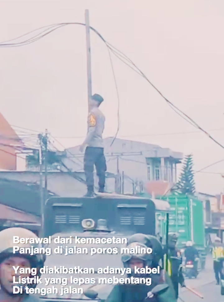 Kabel yang menjuntai rendah di badan jalan tersebut berpotensi membahayakan pengendara sekaligus memicu kemacetan di jalur utama penghubung wilayah tersebut. Melihat kondisi itu, Aiptu Adrian berinisiatif menggunakan mobil patroli sebagai tumpuan untuk menjangkau kabel yang menggantung.