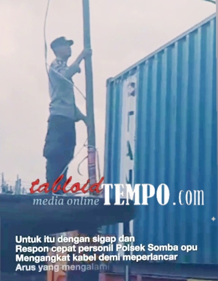 TabloidTEMPO.com | GOWA – Respons cepat ditunjukkan personel Kepolisian Sektor (Polsek) Somba Opu saat menemukan kabel listrik milik Perusahaan Listrik Negara (PLN) yang putus dan menggantung di Jalan Poros Malino, Kecamatan Somba Opu, Kabupaten Gowa, Sabtu (7/3/2026).